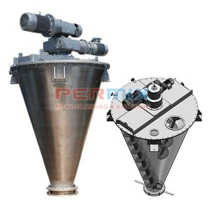 PerMix Planetarna konusna mešalica serije PNA se sastoji od pogonske jedinice, konusnog plašta , sklopa za prenos, spirale i ventila za ispuštanje. Spirala (jedna, dve tri ili više prema zahtevu procesa) je postavljena paralelno sa konusnim zidom sa malim zazorom ,a dužina spirale je skoro iste dužine kao izvodnica konusa.